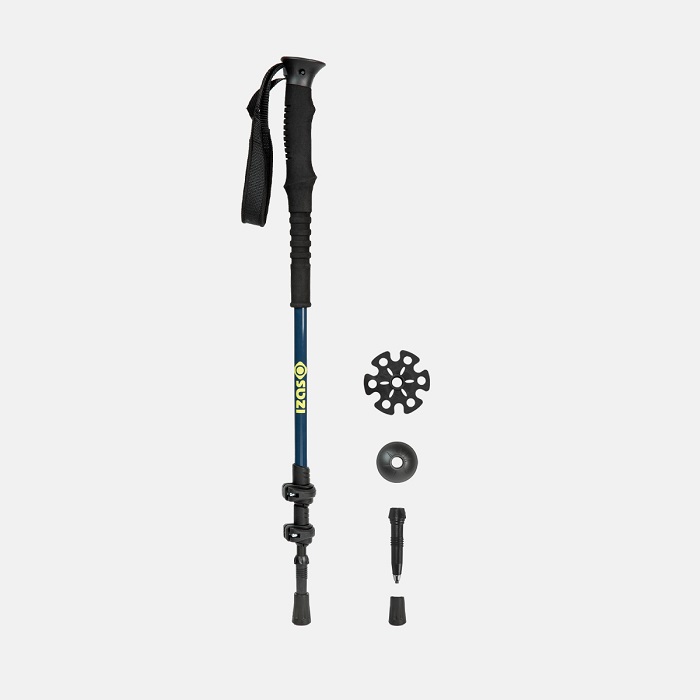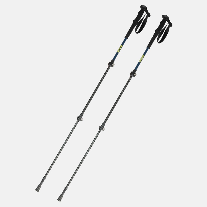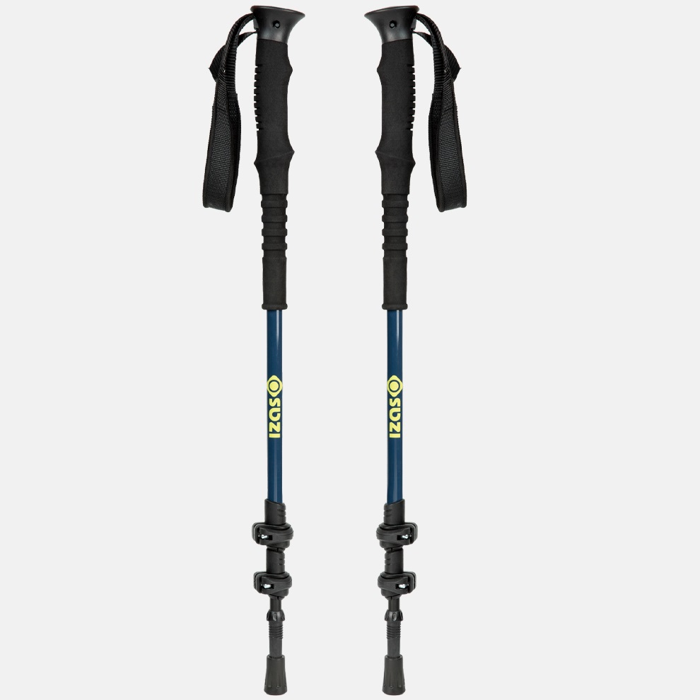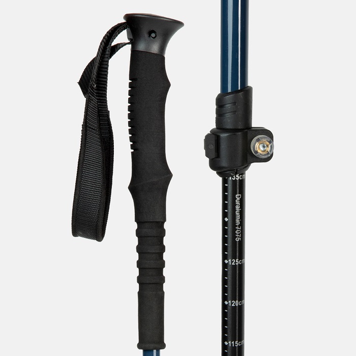 Bastón para trekking. Agarre largo de caucho con correa de nylon y espuma antideslizante en el eje superior. Doble Flicklock. Dos secciones de ajuste. Peso aproximado por par: 450 gr. Altura regulable: 64-136 cm.se venden por pares