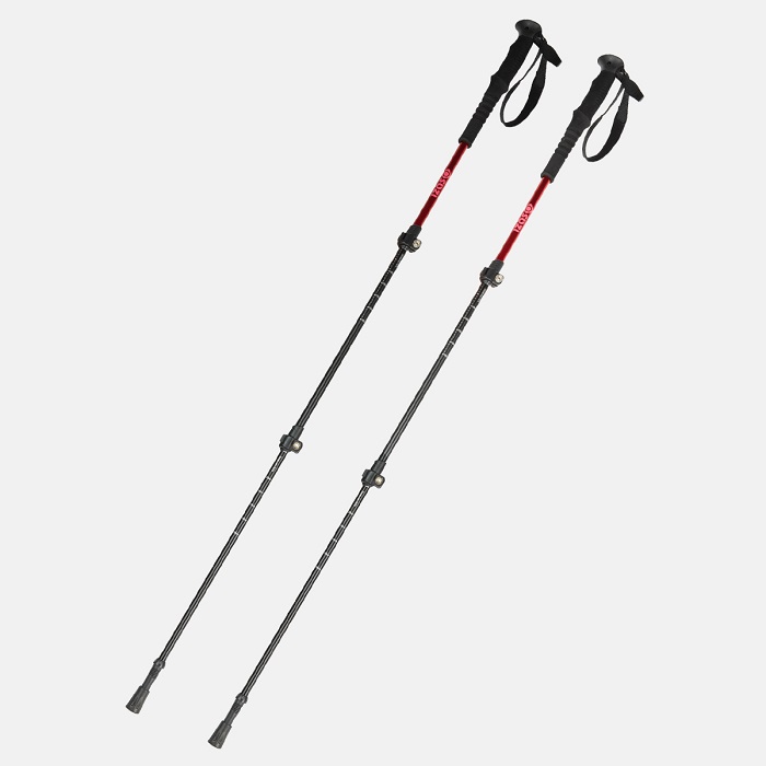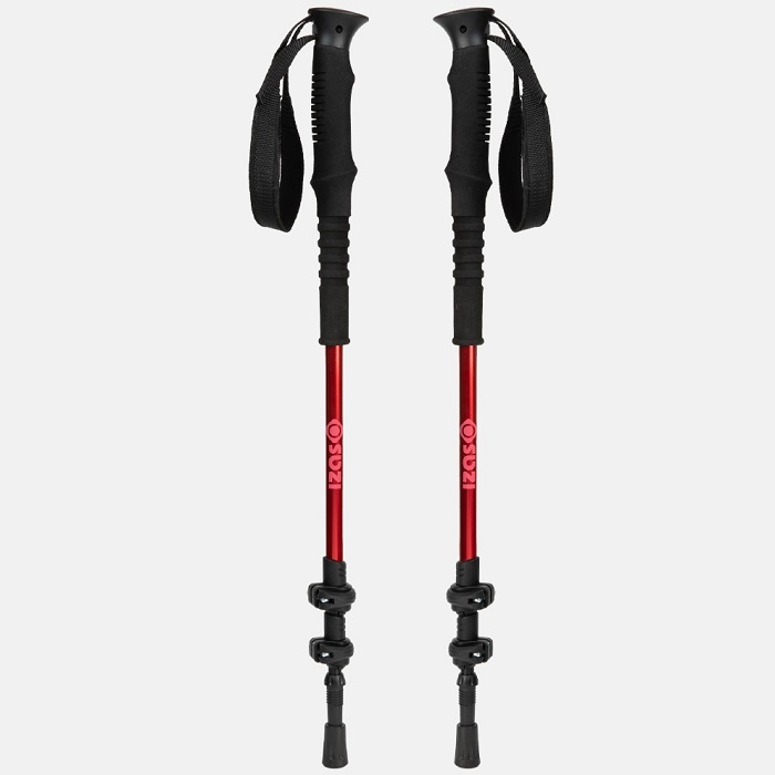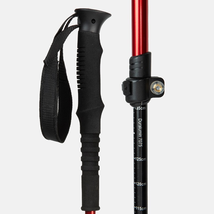 Bastón Piura, ideal para senderismo. Agarre largo de caucho con correa de nylon y antideslizante de espuma, Doble FlickLock, es decir, dos secciones de ajuste. Se venden por pares.